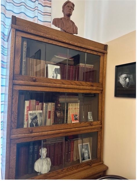 Отдельный уголок комнаты — кресло с книжным шкафом, наполненным томами, которые посвящены жизни и деятельности В.И. Ленина. В фигуре «вождя мирового пролетариата» поэт славил «мира веру» и свою «веру». Во время Гражданской войны Маяковский выступал перед рабочими, матросами, партийной аудиторией — в клубах, на диспутах, в школах. Он читал стихи, говорил о путях развития нового искусства. В стихотворении «Владимир Ильич» поэт уже с первых строк дает понять: вождь — главная движущая сила революции.