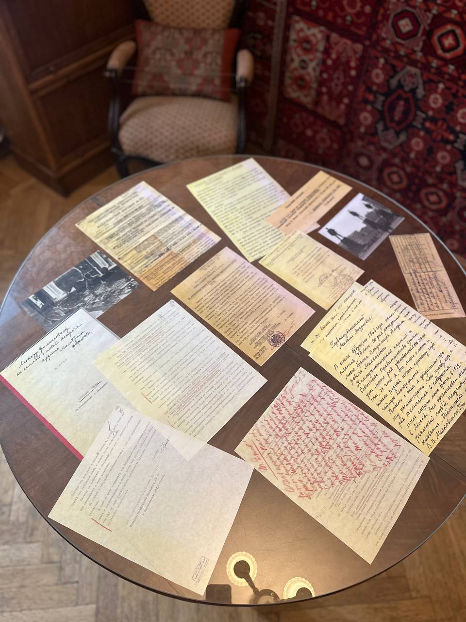 Сказать, что она была опорой семьи, недостаточно: Людмила, держала на себе скорее не дом, а равновесие, причем с ранней юности — когда она в 1905 году везла в Кутаис из Москвы первые революционные листовки — и до самых последних лет, когда на старом столе аккуратно раскладывала письма в ЦК и Совмин. И вот в комнате мы видим эти многочисленные обращения к Советскому руководству с выделенными красным призывами прекратить «безразличие к памяти» Владимира Маяковского.