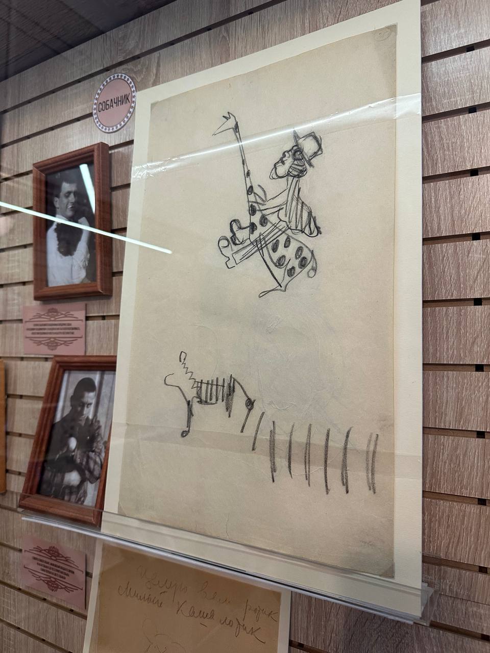 Особое внимание среди экспонатов привлекают рисунки жирафов, которые поэт нередко машинально создавал во время разговоров или ожидания. Одна из современниц вспоминала, что поэт этими животными изрисовал ей весь стол. Гораздо легче и чище, чем через образы людей, выражал Маяковский душу через нечеловеческое: миноносица и миноносец, пароходы, облака, чайники, вывески — и жирафы. «То-то он всегда рисует прекрасных нечеловеков: жирафов, кактусы, пароходы…», — отмечает современный исследователь.