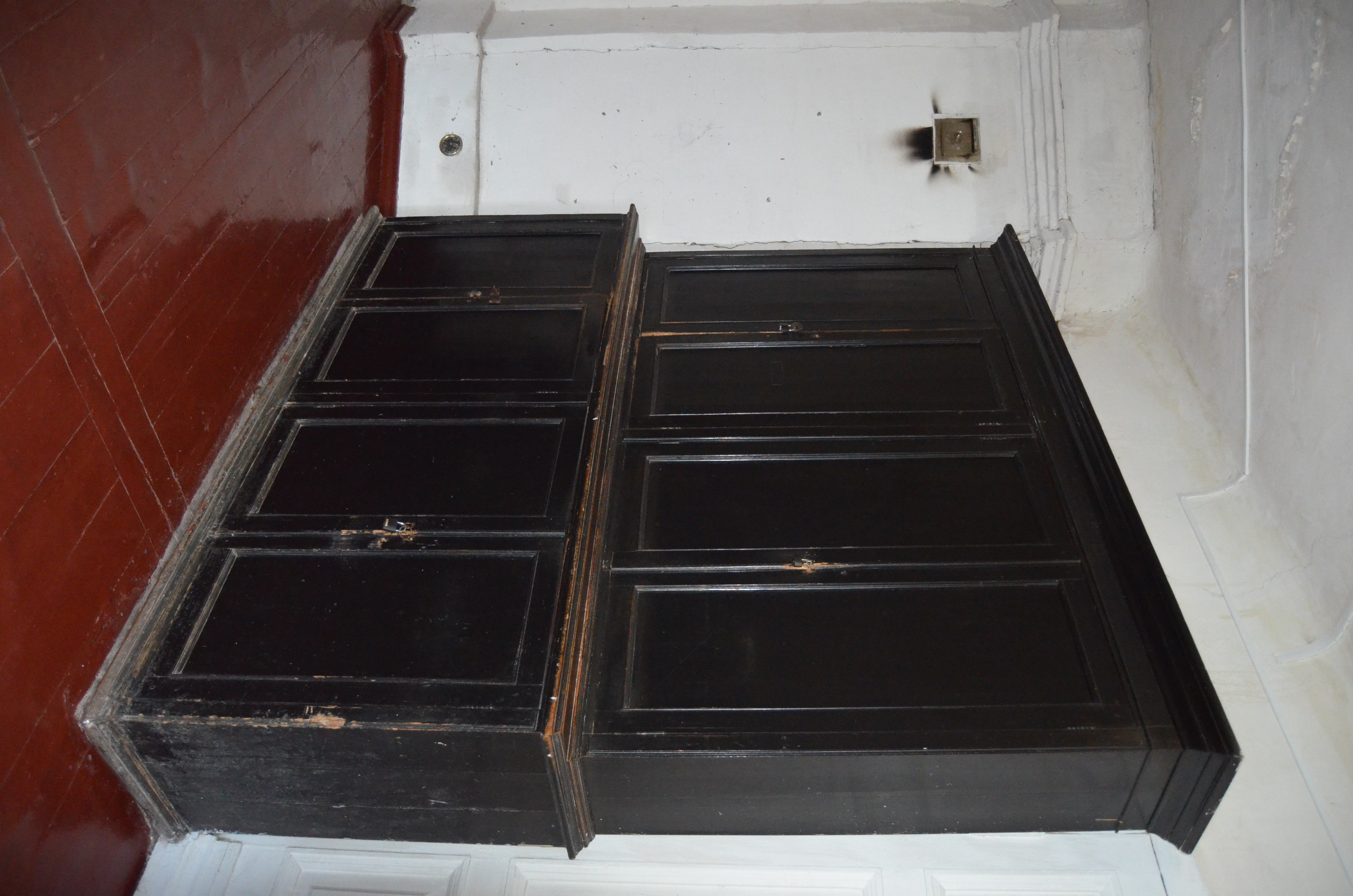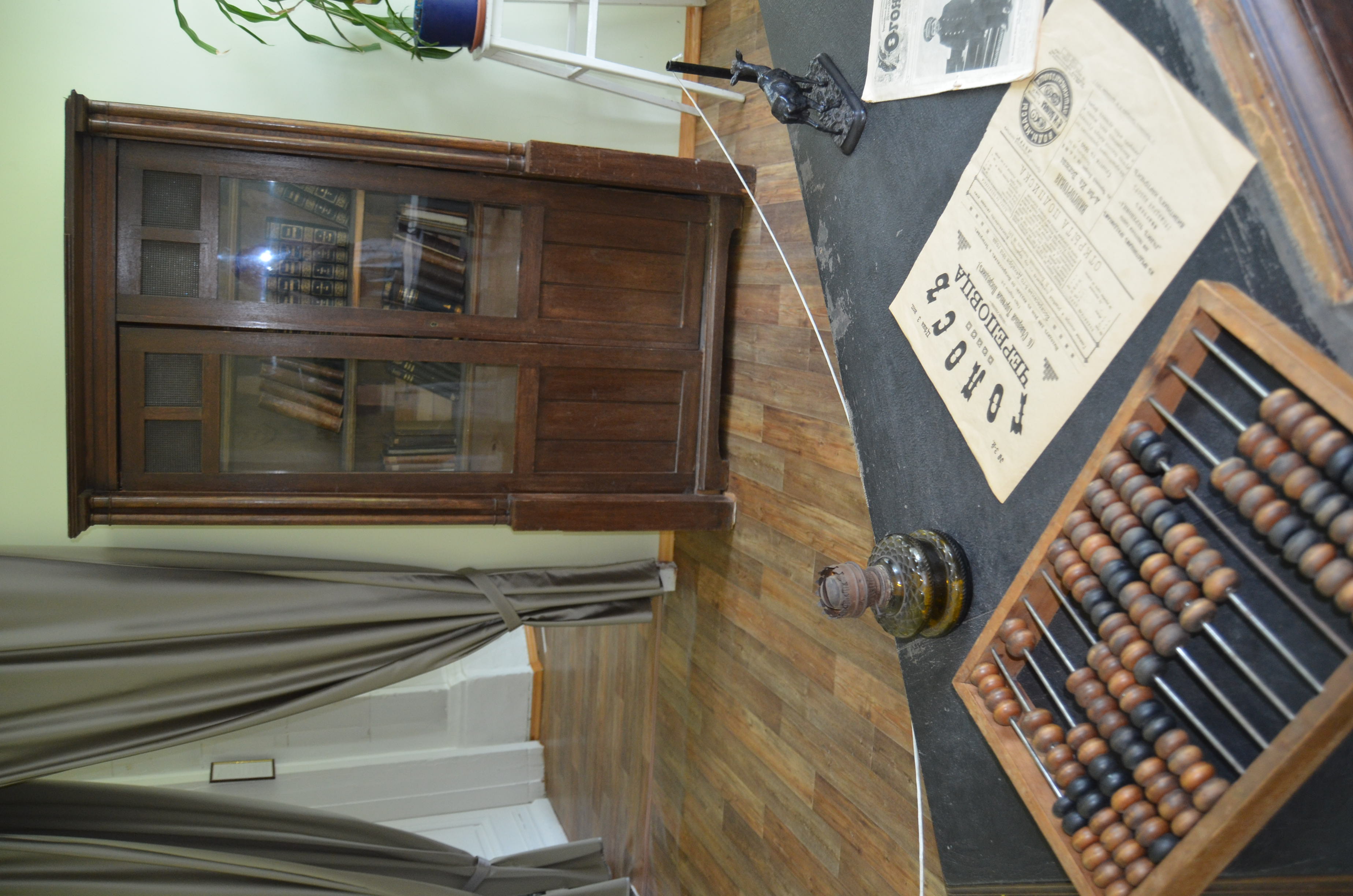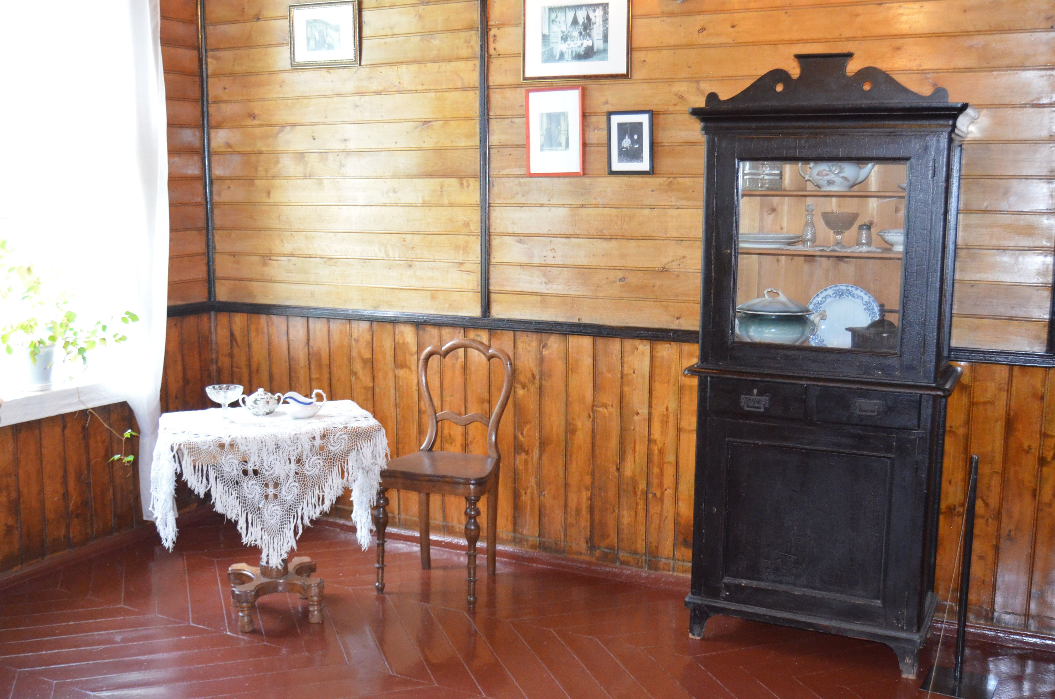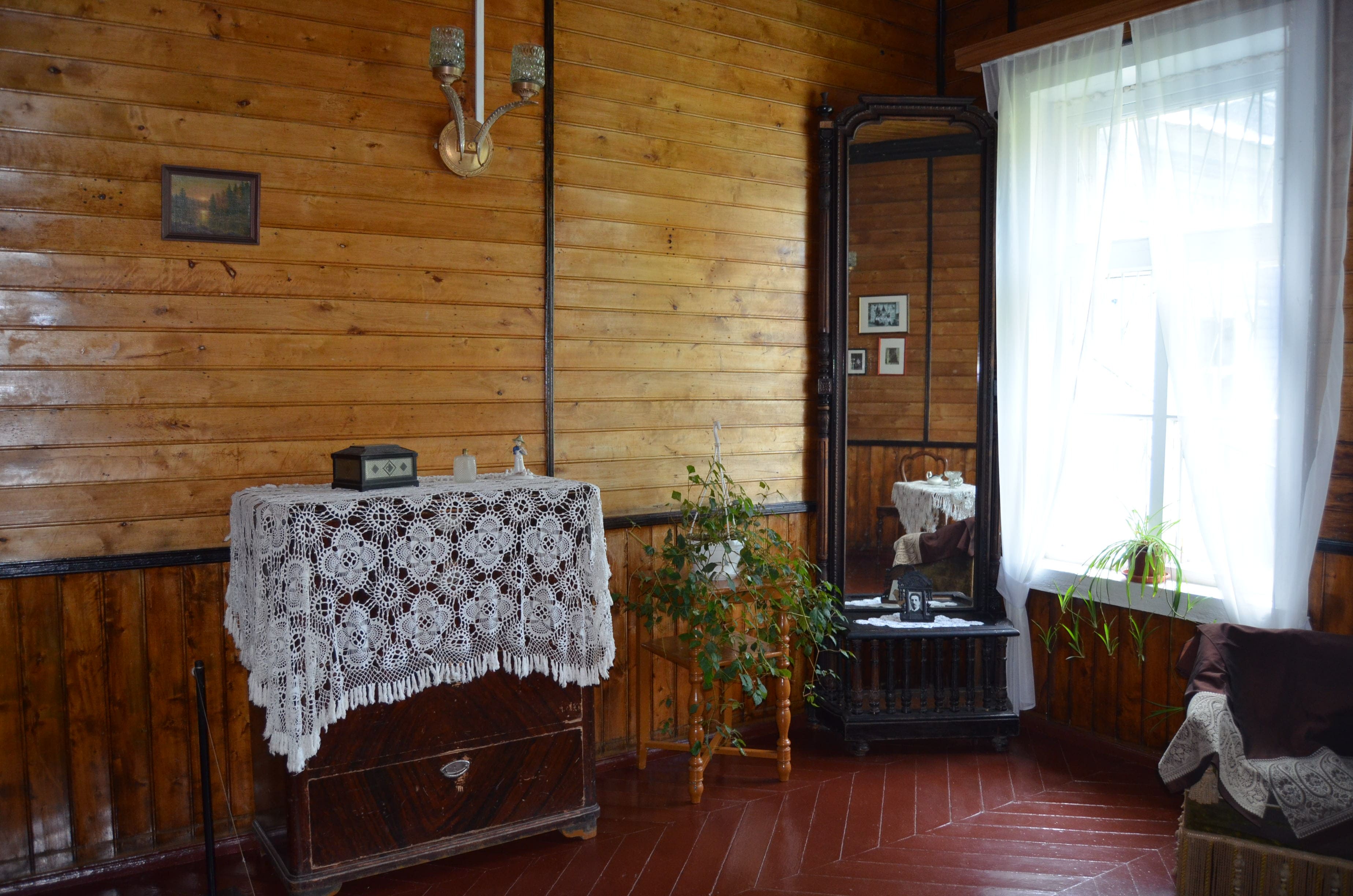 Основная часть предметов в экспозиции — типологические, то есть соответствующие эпохе, а не принадлежащие семье Лотаревых. Но остались в доме и подлинные вещи. Это два напольных зеркала, посудная горка (шкафчик) и большой шкаф в коридоре, в котором в советские годы сотрудники санатория хранили лекарства.