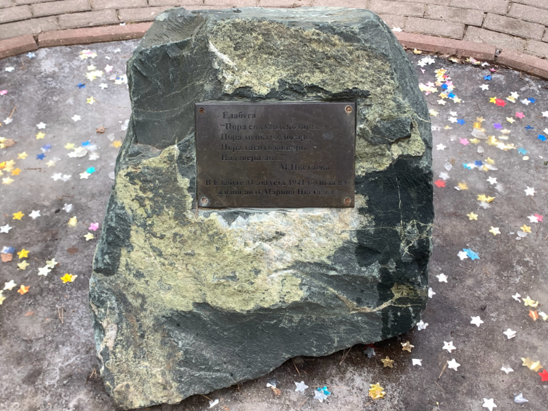 Особенно выделяется камень с высеченными на нём буквами «Елабуга» — это было последнее пристанище русского поэта. Точно установленной могилы у Марины Цветаевой нет, как нет её у мужа, Сергея Эфрона, у младшей дочери Ирины и сына Георгия. Кто-то похоронен в общих могилах, кто-то — в неизвестных местах.