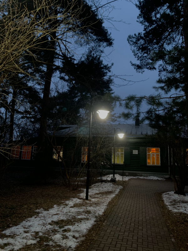 Чтобы добраться до дома, необходимо пройтись по участку. На всём пути до крыльца меня сопровождали высокие старые сосны, небольшие кустарники и проглядывающая сквозь снег трава. Во времена Цветаевой деревьев было куда больше — как на участке, так и за его пределами. Можно представить, какой отрадой служила местная флора человеку, с детства влюблённому в лесные немецкие сказки и поэзию Иоганна Вольфганга Гёте. Недаром, должно быть, Цветаевой достался участок с самой древней сосной во всей России. У этой сосны даже есть сертификат, выданный ей в рамках программы «Деревья — памятники живой природы». Согласно оценке экспертов, этой сосне более 120 лет, и если она ничем не заболеет, то проживет ещё столько же. Вот и Марина Цветаева продолжает жить в наших умах и сердцах…