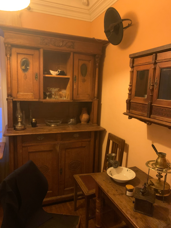 Дело в том, что в военное и послевоенное время в пустующий дом приходили самые разные люди — нищие, солдаты, мародеры. После войны дом стал своего рода коммунальной квартирой, так что большая часть имущества была утеряна. Среди уцелевших вещей можно выделить массивный деревянный буфет, который ранее находился в глубине дома, и обеденный стол, за которым собирались Эфроны-Цветаевы. Самовар и сундук также сохранились.