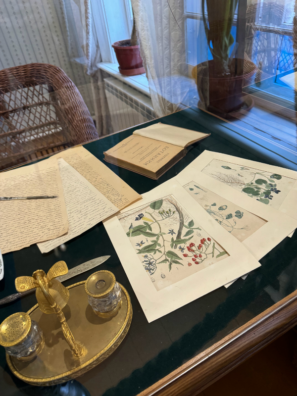 Из гостиной можно проследовать в кабинет Андрея Николаевича Бекетова. «Он с николаевских времен стоит на страже просвещения», — так писал поэт о своем деде. Знаменитый русский ботаник, в честь которого названа гора в Антарктиде, ректор Петербургского университета, он всегда стремился к тому, чтобы сделать знание общедоступным. Именно он организовал Бестужевские женские курсы, которые справедливо можно было бы назвать Бекетовскими, и, будучи либералом, защищал своих студентов во время протестов и демонстраций. Узнав, что кто-то из молодых людей попал в беду, Андрей Николаевич, по воспоминаниям его дочери Марии, надевал вицмундир и отправлялся в полицейский участок вызволять мятежника, обещая взять того под свою опеку.